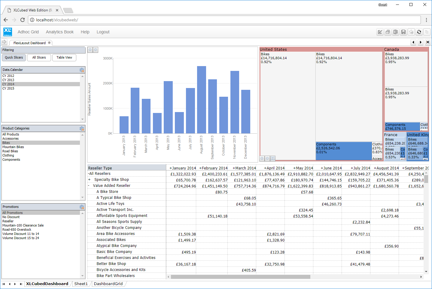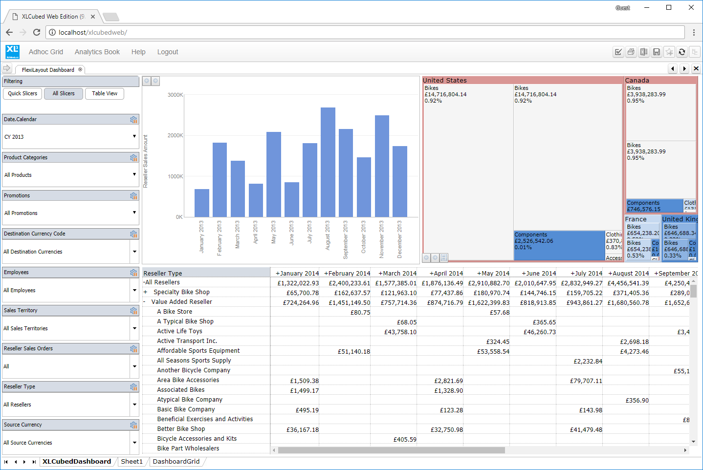 A working example of this which connects to the sample bicycle sales local cube which we  ship with the product is available here or you can view the online demo here.